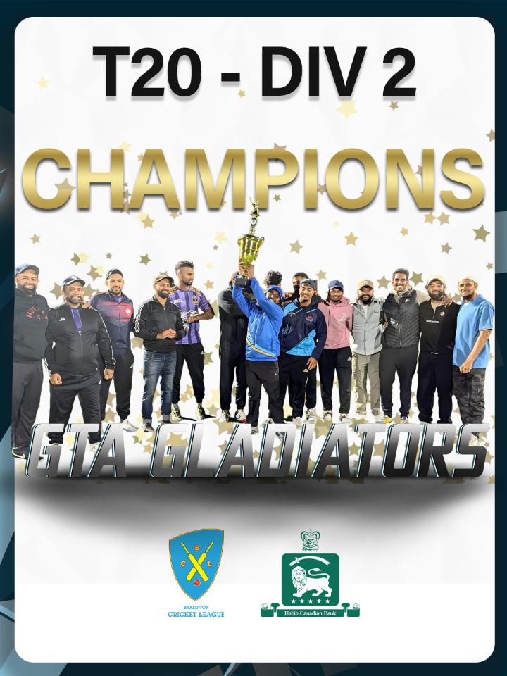 🎉 Congrats to the 20 Over Division 2 Champions: GTA Gladiators!! 🏆Your hard work and dedication have paid off! We’re excited to celebrate with you at the upcoming award ceremony. Full scorecard: https://www.bramptoncricketleague.ca/BCL/viewScorecard.do?matchId=3047&clubId=1828 |